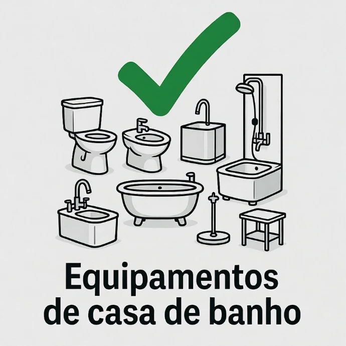 sanitas, bidés, lavatórios, banheiras, bases de duche, cabines de duche, espelhos de casa de banho, armários de casa de banho