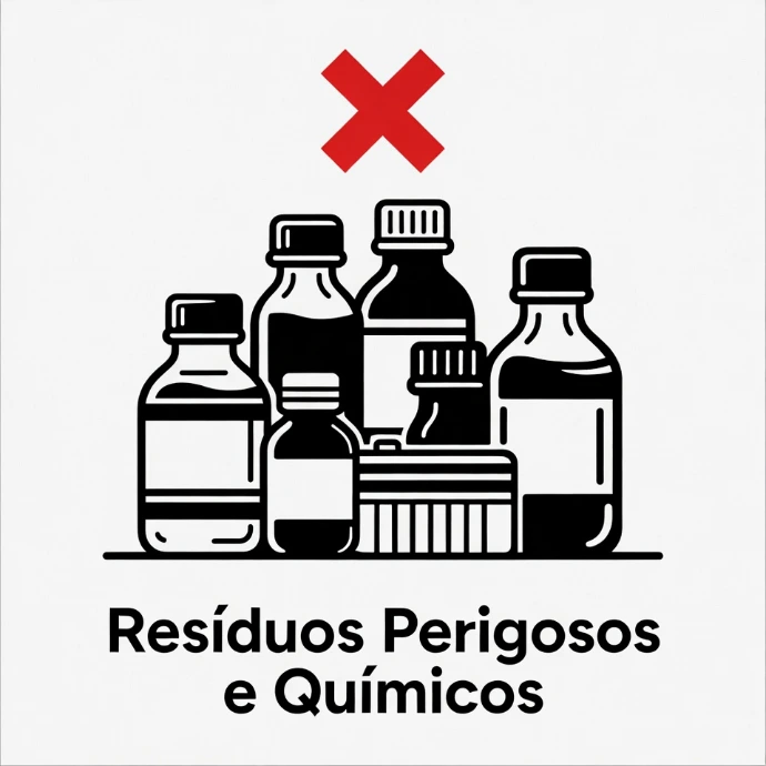 tintas, vernizes, solventes, pesticidas, pilhas, baterias, óleos usados, produtos de limpeza tóxicos, etc