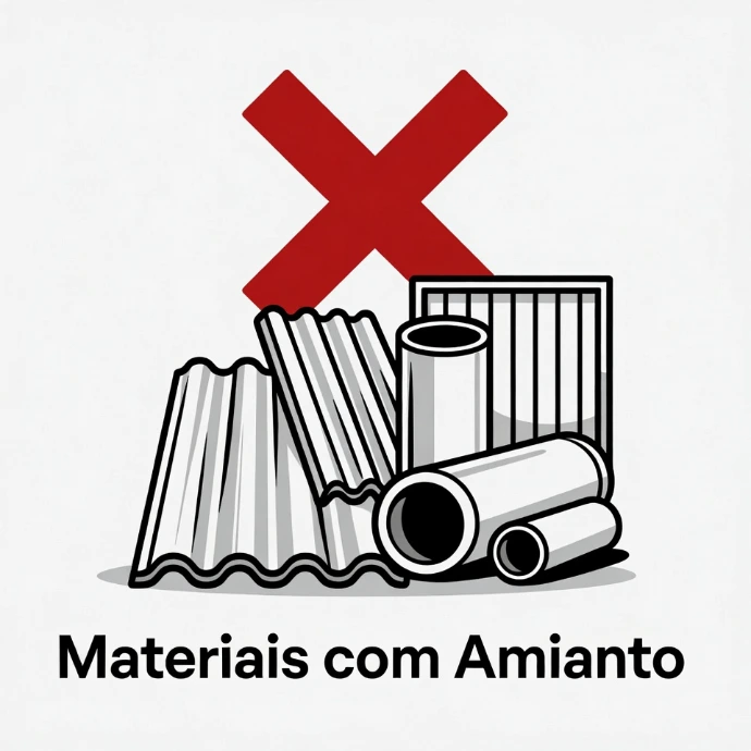 telhas de fibrocimento, caixas de água antigas, tubos ou chapas com amianto