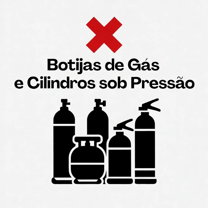botijas de butano/gás, garrafas de oxigénio, acetileno, extintores, etc