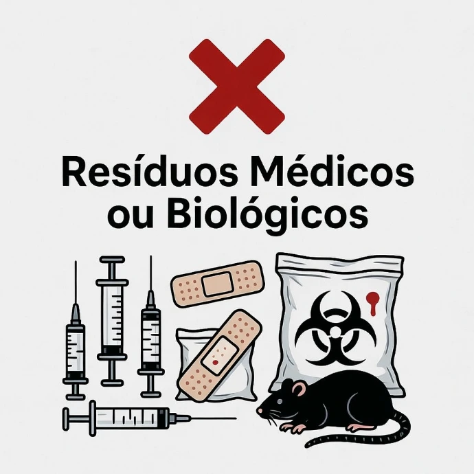 seringas, pensos, compressas, animais mortos, resíduos hospitalares